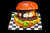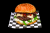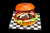 Черна бриош питка, айсберг, домат, телешко Блек Ангъс от Небраска, ементал, картофено рьощи, бекон, трюфел майонеза Хелманс, Queen сос.