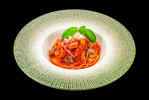 Доматен сос, кайма, лук, морков, селъри, подправки и пармиджано